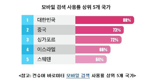매주 모바일에서 검색하는 사용자의 비중은 88%로 중국을 제치고 조사 대상 국가 중 가장 높은 수치를 기록했다. 구매 전 스마트폰으로 상품과 가격, 기능을 비교하는 온라인 소비자의 비중(51%)도 아·태 지역 1위였다.