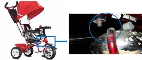소비자원 조사결과, 이 자전거는 기준치인 20㎏ 미만의 어린이가 탑승했습에도 앞바퀴와 운전대를 연결하는 부분의 용접이 끊어졌던 것으로 드러났다.