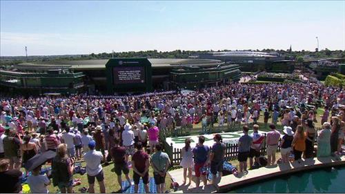 윔블던 테니스대회가 열리는 윔블던의 경기장에서도 경기장 안팎에 있는 3천500여명이 함께 묵념했다.