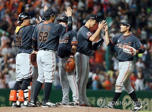| △ 승리에 환호하는 한화 이글스 선수들. (연합뉴스 자료사진) |
