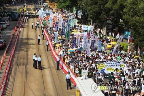 | △ 홍콩의 주권이 영국에서 중국으로 반환된지 18주년인 지난 1일 홍콩 시민들이 민주주의 확대를 요구하는 '7·1대행진' 행사를 벌이고 있다. (연합뉴스 자료사진) |