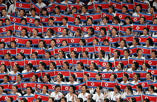 | △ 지난 2003년 8월 대구 월드컵경기장에서 열린 하계 유니버시아드 대회 개회식에서 북한 응원단이 응원하는 모습 .<< 연합뉴스 DB >> |