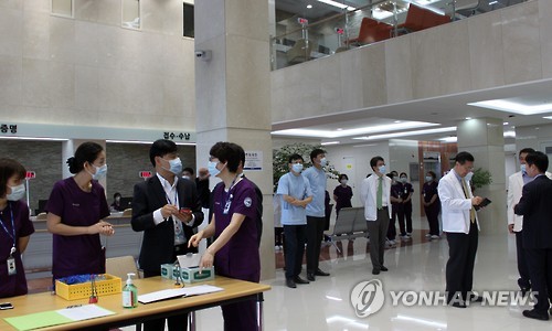 병원 1층 앞 선별소에서는 병원 방문객 모두에 대한 체온 측정과 함께 손 소독을 했으며 이날 오전 고열 등 메르스 의심증상으로 선별소를 거쳐 선별진료실을찾은 방문객은 없었다.