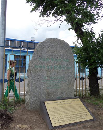 시아 연해주 우수리스크에 있는 '한인 이주 140주년 기념관' 관계자는 안중근 의사의 업적을 기린 비석을 지난 1일 기념관 마당에 세웠다고 6일 밝혔다.