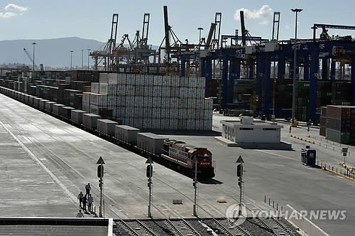 | △ 중국이 21세기 해상실크로드의 유럽 축으로 상정한 그리스의 피레우스 항. 컨테이너를 가득 실은 화물열차가 보인다. 이 항구의 컨테이너 터미널 3개가운데 2개를 중국 해운사가 운영한다.(AP=연합뉴스 자료사진) |
