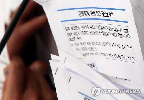 윤 장관이 이날 국회 외통위에서 연합뉴스 카메라에 노출한 '강제징용 관련 일측 발언문 평가' 문건에는 'against their will', 'forced to work' 두 부분은 강제노동을 지칭하는 일반적 표현이라고 돼 있다.
