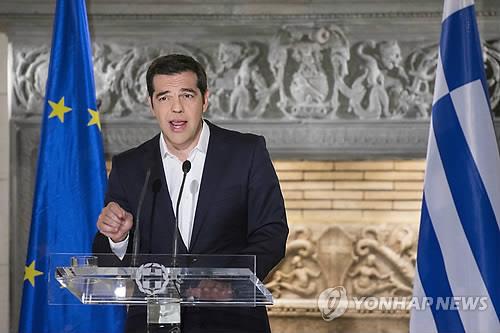 | △ (아테네 EPA=연합뉴스) 알렉시스 치프라스 그리스 총리가 5일(현지시간) 아테네에서 대국민 연설을 하고 있다. 이날 치러진 국민투표에서 채권단 제안에 반대하는 여론이 압도적으로 많은 것으로 나타나자 치프라스 총리는 "반대 결정은 민주주의는 협박받을 수 없음을 보여준 것"이라며 은행 영업재개 등을 위해 즉시 채권단과의 협상에 나서겠다고 밝혔다. |