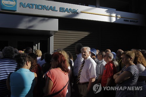 | △ 은행 앞에 줄 선 그리스 연금수급자들(EPA=연합뉴스 자료사진) |