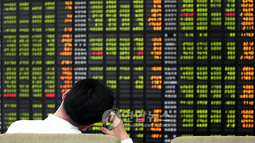 지수는 13.11포인트(0.64%) 오른 2,067.04로 개장, 장 초반 반등에 나섰으나 외국인과 기관의 매도 물량에 눌려 하락세로 바뀌었다.