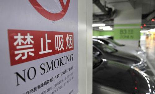 | △ (선양=연합뉴스) 홍창진 특파원 = 중국 정부는 흡연으로 인한 간접피해 증가를 우려해 공공장소에서 금연하도록 입법을 추진 중이다. 사진은 베이징의 한 지하주차장에 설치된 금연표지판. <출처 중국신문망> realism@yna.co.kr |