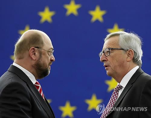 | △ 융커(오른쪽) 위원장과 슐츠 의장(AP=연합뉴스 자료사진) |