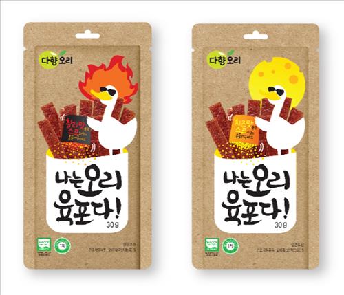 다향오리도 지난해 100% 국내산 오리고기를 갈아서 건조시켜 만든 육포를 특제 분말 수프와 함께 흔들어 먹는 '나는 오리 육포다' 2종을 출시했다.