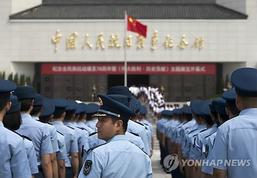 | △ (베이징 AP=연합뉴스) 중국 인민해방군 공군 병사들이 7일 베이징 노구교 인근의 중국인민항일전쟁기념관 개관 기념식에 참석하고 있다. |
