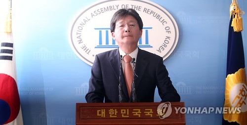 | △ 사퇴 기자회견하는 유승민 (서울=연합뉴스) 도광환 기자 = 새누리당 유승민 원내대표가 8일 오후 국회 정론관에서 사퇴 기자회견을 하고 있다. |