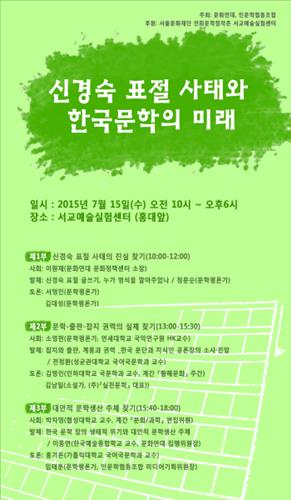 1부에서는 2000년에 신경숙 표절 문제를 제기한 문학평론가 정문순이 '신경숙 표절 글쓰기, 누가 멍석을 깔아주었나'를 주제로 발제한 뒤 문학평론가 서영인, 김대성이 토론자로 참여한다.