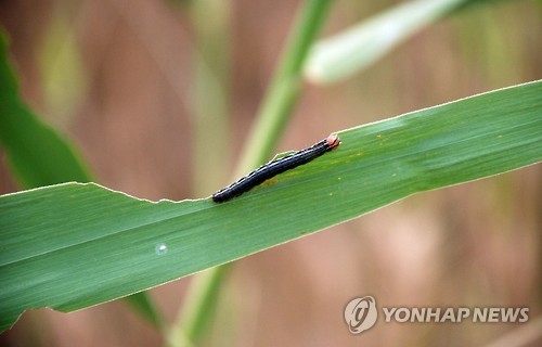 (수원=연합뉴스) 최종호 기자 = '강토를 멸망시킨다'라는 악명이 붙을 정도로 벼와 옥수수 등을 닥치는 대로 갉아먹는 해충 '멸강충'이 전국 곳곳에서 극성을 부리고 있다.
