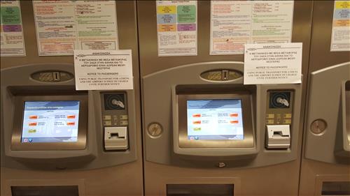 8일(현지시간) 오전 출근시간, 아테네 지하철 3호선 메가로 뮤지끼역에 있는탑승권 판매기계 4대에 부착된 안내문이다.