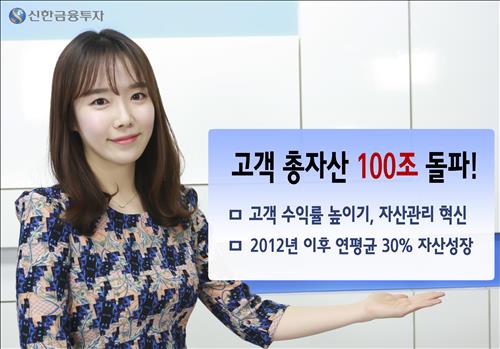 (서울=연합뉴스) 임수정 기자 = 신한금융투자는 창립 이래 처음으로 고객 총자산이 100조원을 돌파했다고 9일 밝혔다.