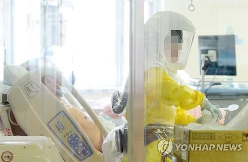 | △ (서울=연합뉴스) 윤동진 기자 = 메르스 환자가 격리 치료 중인 서울 중구 국립중앙의료원에서 방호복을 입은 병원 관계자가 업무를 보고 있다. 2015.6.19 mon@yna.co.kr |