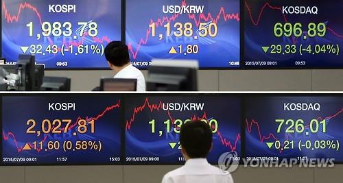이날 코스피지수는 전날보다 0.58% 상승한 2,027.81에 거래를 마쳤다. 주가는 장 초반 2.5% 넘게 밀리며 2,000선 아래로 떨어졌었다. 서울 외환시장에서 원/달러 환율은 2.80원 하락한 1,133.90원에 마감했다.