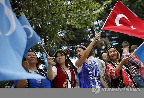 | △ (이스탄불 AP=연합뉴스 자료사진) 터키내 위구르인들이 지난 4일 이스탄불에서 중국이 서부 신장(新疆)위구르자치구의 위구르족 무슬림을 억압하고 있다며 항의 시위 행진을 벌이고 있다. 이번 시위는 이슬람의 성월(聖月) 라마단 기간에 무슬림 위구르인들이 예배를 드리고 금식하는 데 제한이 가해지고 있다는 터키 언론매체들의 보도를 놓고 터키와 중국 사이에 다툼이 일고 있는 가운데 발생했다. |
