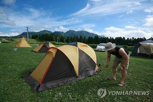 ▲ 캠핑장 = 일본 최남단에 있는 규슈는 아름다운 풍광을 자랑한다. 해발 800m에 위치한 구주고겐은 아름다운 규슈의 산들을 올려다볼 수 있는 위치에 있어 특히 인기가 높다.