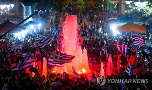 | △ 그리스의 긴축반대 국민투표 결과가 나온 후 아테네 의사당 앞에서 열린 환영 집회. (EPA=연합뉴스 자료사진) |