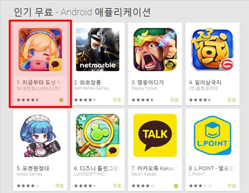 (서울=연합뉴스) 고상민 기자 = SK네트웍스서비스는 자사 모바일 게임 '지금부터 도넛 for Kakao'가 출시 10일 만에 구글플레이 인기 무료 게임순위 1위에 올랐다고 10일 밝혔다.