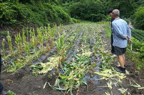 (청주=연합뉴스) 박병기 기자 = 충북 보은군 회인면 오동리에서 옥수수 농사를 짓는 이홍기(75)씨는 최근 쑥대밭으로 변한 밭을 보고 있으면 머리끝까지 화가 치밀어 오른다.