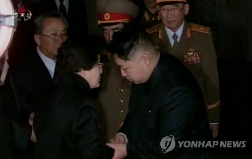 | △ 김정은과 이희호 여사 (서울=연합뉴스) 김대중 전 대통령의 부인인 이희호 여사가 다음 달 5∼8일 북한을 방문한다. 남측 김대중평화센터와 북측 아시아태평양평화위원회는 6일 개성에서 실무접촉을 갖고 이희호 여사의 3박 4일간의 평양 방문 일정에 합의했다. 방북 중 김정은 국방위원회 제1위원장 면담 여부와 내용 등이 주목된다. 사진은 2011년 12월 이 여사가 평양 금수산기념궁전을 찾아 김정일 시신에 조문한 뒤 김 위원장과 만나는 모습. (조선중앙TV. 연합뉴스 자료) |