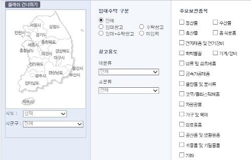 국토부는 지난해 물류창고정보시스템(market.nlic.go.kr) 사이트를 구축해 지역별로 농산물·의류·출판물·자원광물·귀중품 등 품목에 따라 창고를 검색할 수 있게 했다.