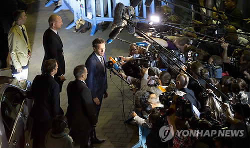 | △ 유로그룹(유로존 재무장관 협의체) 의장인 예룬 데이셀블룸 네덜란드 재무장관(가운데)이 11일(현지시간) 브뤼셀에서 그리스 개혁안 수용 여부와 구제금융 협상 재개 문제를 논의한 유로그룹 회의가 끝난 뒤 기자회견을 하고 있다. (AP=연합뉴스) |