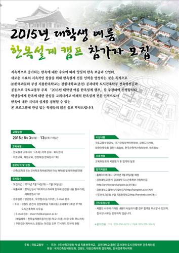 국토교통부는 다음달 3일부터 열흘간 강원도 홍천군에 있는 '지용한옥학교'와 강원대에서 대학생 한옥캠프를 진행한다고 13일 밝혔다.