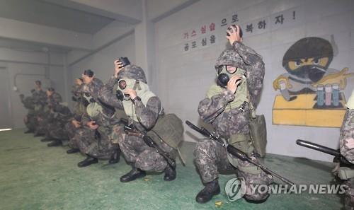 일렬로 방독면을 착용한 여 후보생들이 숨을 죽인채 화생방실 안으로 들어갔다.