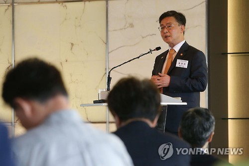| △ 홍용표 "개성공단 임금 문제 남북 합의로 해결해야" (서울=연합뉴스) 김호준 기자 = 홍용표 통일부 장관이 15일 오전 서울 중구 소공동 플라자호텔에서 열린 민족화해협력범국민협의회 주최 강연에서 개성공단 북한 근로자 임금을 둘러싼 갈등을 남북 합의로 해결해야 한다는 의지를 피력하고 있다. |