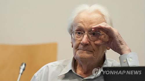 (서울=연합뉴스) 이 율 기자 = 과거 나치 정권 시절 집단수용소인 아우슈비츠에서 30만 명의 학살에 공조한 혐의로 기소된 나치 친위대원(SS) 오스카 그뢰닝(94)에게 징역 4년이 선고됐다.