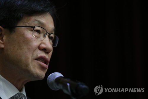 | △ 경영쇄신안 발표하는 권오준 포스코 회장 (서울=연합뉴스) 진성철 기자 = 권오준 포스코 회장이 15일 서울 여의도 한국거래소에서 개최한 기업설명회에서 경영쇄신안을 발표하고 있다. 2015.7.15 zjin@yna.co.kr |