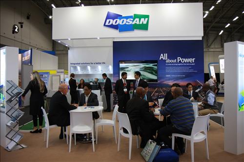 두산중공업은 독립 전시관을 설치하고 남아공을 비롯한 아프리카 지역 발주처와 현지 기업을 대상으로 보일러, 터빈 등 핵심 발전설비 기술력과 사업수행 역량을 알린다.