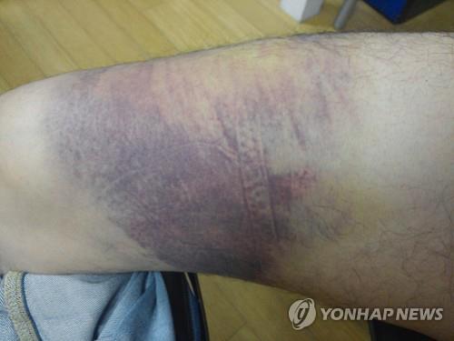 | △ D(29)씨가 A씨 등에게 폭행당해 허벅지에 시퍼렇게 멍이 들었다. |