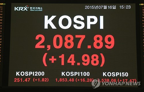 이날 코스피는 14.98포인트(0.72%) 오른 2,087.89에 장을 마감했다.