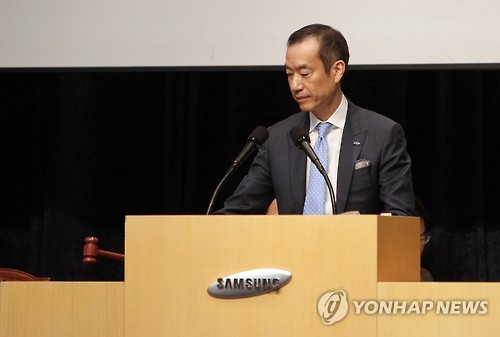| △ 개회선언하는 최치훈 삼성물산 건설부문 대표이사 사장 (서울=연합뉴스) 최치훈 삼성물산 건설부문 대표이사 사장이 17일 오전 서울 양재동 aT센터에서 열린 제일모직과의 합병계약 안건을 주주 결의에 부치는 임시 주주총회의 개회 선언을 하고 있다. (삼성물산 제공) |