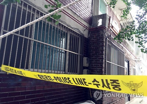 | △ 이웃 간 칼부림 일어난 부천 연립빌라 (부천=연합뉴스) 손현규 기자 = 17일 경기도 부천에서 한밤중 윗집 남성이 아래층에 사는 이웃집 모자(母子)를 흉기로 찌르고 도주해 1명이 숨지고 1명은 중태에 빠졌다. 사진은 범행이 발생한 경기도 부천시 원미구의 한 연립주택. 이 연립주택은 2층짜리 건물로 한 층에 3가구씩 거주하고 있다. |
