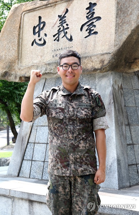 | △ 심폐소생술로 시민 구한 육군하사 (서울=연합뉴스) 지난 11일 경기도 안양의 한 영화관에서 쓰러진 50대 남자 목숨을 심폐소생술로 구한 수도군단 방공대대 소속 이동건(24) 하사. 이 하사는 당시 상황에 대해 "쓰러져 있는 것을 본 순간 살려야겠다는 생각만 했습니다."고 말했다. 2015.7.19 << 육군 제공 >> photo@yna.co.kr |