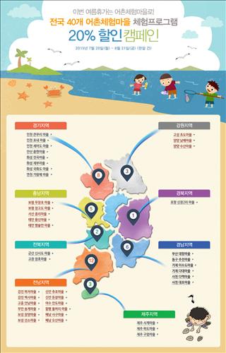 (세종=연합뉴스) 김아람 기자 = 해양수산부는 여름 휴가기간인 7월 20일부터 8월 21일까지 전국 40개 어촌체험마을에서 다양한 할인 혜택을 제공한다고 19일 밝혔다.