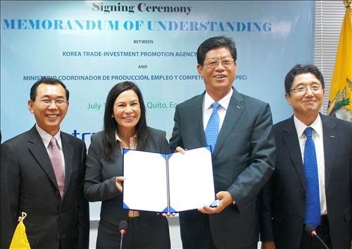 이번 MOU는 한-에콰도르 간 상호 교역을 활성화해 무역 수지를 개선하고 현지 정부와 우호적 네트워크를 구축, 향후 우리 기업의 진출을 늘리는 데 기여할 것으로 기대된다.
