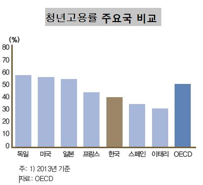 한편 보고서는 "우리나라는 2000년대 중반 이후 청년층 고용사정이 악화돼 왔는데 이는 성장세가 둔화된 데다 청년 고용시장을 둘러싼 구조·제도적 요인이 독일, 미국 등에 비해 미흡하기 때문"이라고 평가했다.