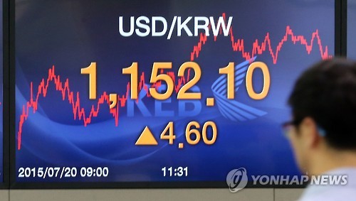 원/달러 환율은 지난 16일 장중 한때 달러당 1,150원선을 돌파한 적이 있지만 종가 기준으로 1,150원대에 올라선 것은 2013년 7월 8일(1,152.3원) 이후 2년 만에 이번이 처음이다.