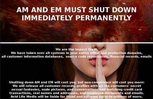 크렙스는 이 해커집단이 '애슐리 매디슨'과 다른 유사성격 사이트 '이스태블리시드 멘'의 운영을 중단하지 않으면 보유 정보를 공개하겠다는 협박을 하고 있다며, 이 해커 집단이 절취한 정보를 악용해 ALM으로부터 돈을 뜯어내려 한다는 주장이 제기되고 있다고 전했다.