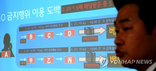 2월27일 경기에서도 전 감독 지시대로 'KT가 6.5점 이상 패한다'는 쪽에 김씨가 3억8천만원, 윤씨가 1억9천만원을 베팅했다.