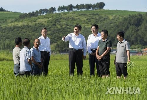 | △ (선양=연합뉴스) 홍창진 특파원 = 중국 관영언론의 하나인 인민망이 최근 시진핑(習近平) 중국 국가주석의 연변조선족자치주 방문을 계기로 연변 발전상을 조명하는 기사를 보도했다. 지난 16일 시 주석이 연변 광둥촌에서 농업상황을 점검했다. (연합뉴스 DB) realism@yna.co.kr |